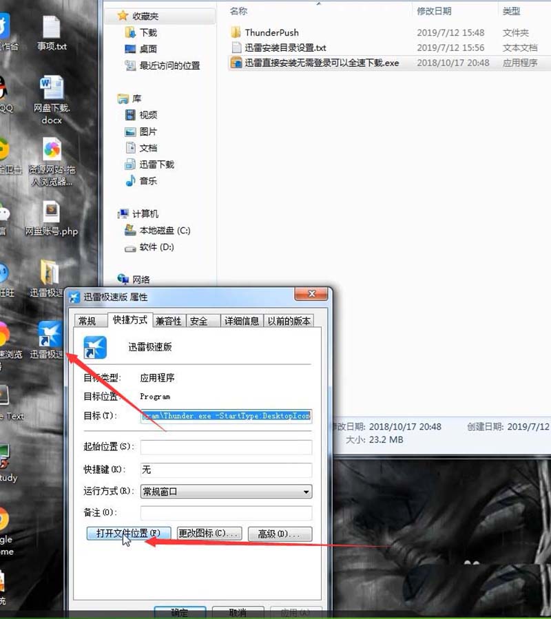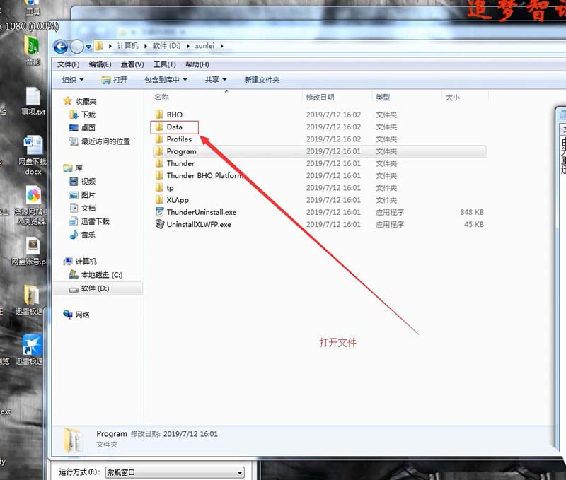4、在桌面找到迅雷圖標右鍵--打開文件位置,返回上一層目錄找到Data目錄 打開