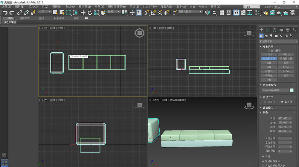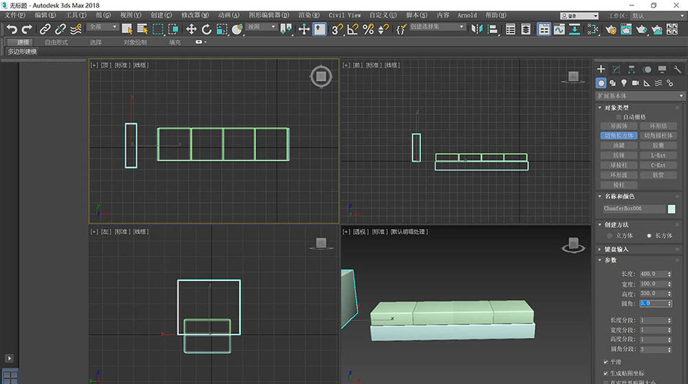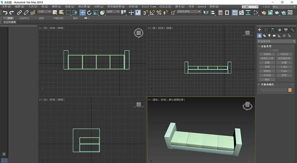 3ds max中幾何體建模命令,制作一組組合沙發(fā)。該怎么制作沙發(fā)扶手呢?下面我們就來(lái)看看詳細(xì)的教程。