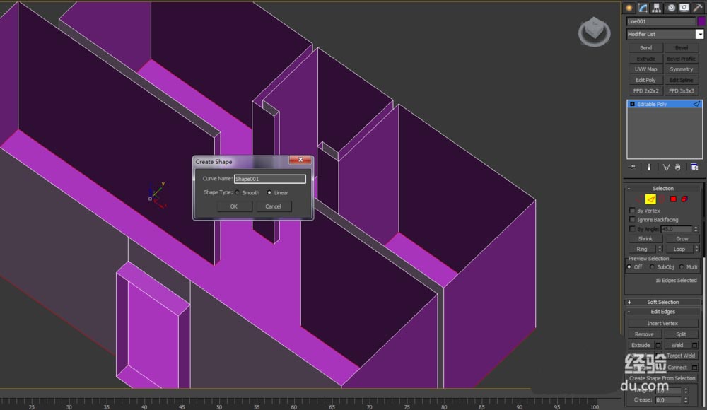 4、選好邊后,右單擊選擇Create Shape 選項(xiàng),再選擇 Linear選項(xiàng)點(diǎn)擊確定按鈕;如下: