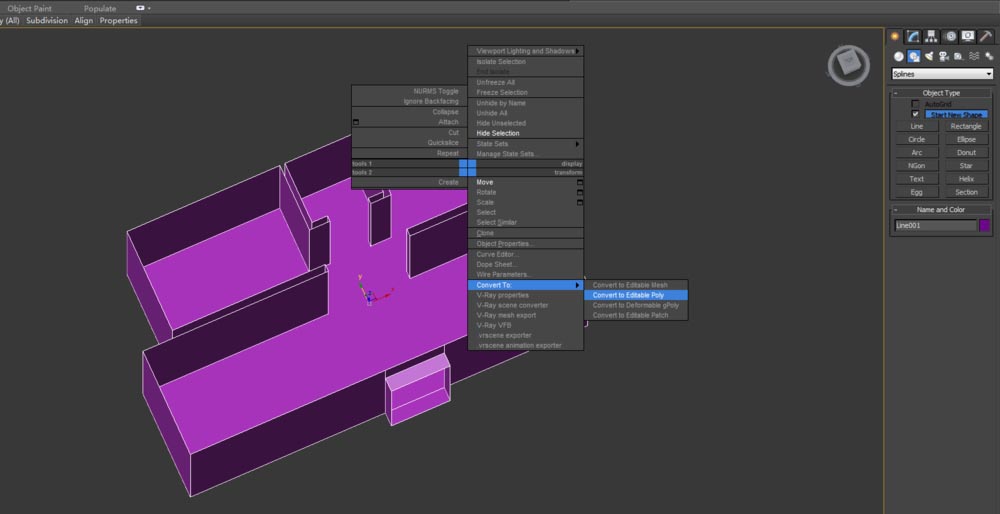 2、選擇模型,右單擊選擇Convert to Editable Poly;如下: