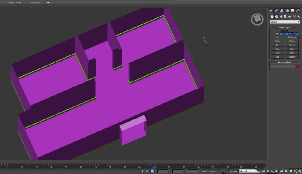 1、打開3d max軟件,先導(dǎo)入或者繪制出一個(gè)戶型模型;如下: