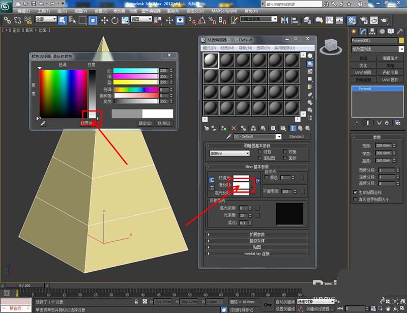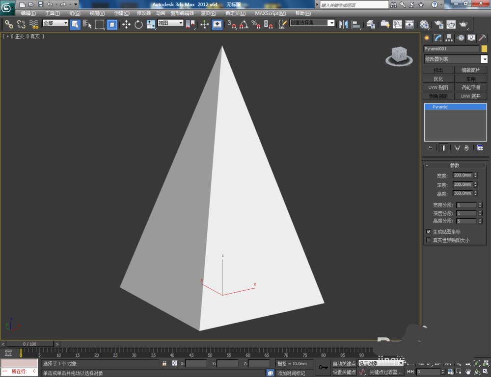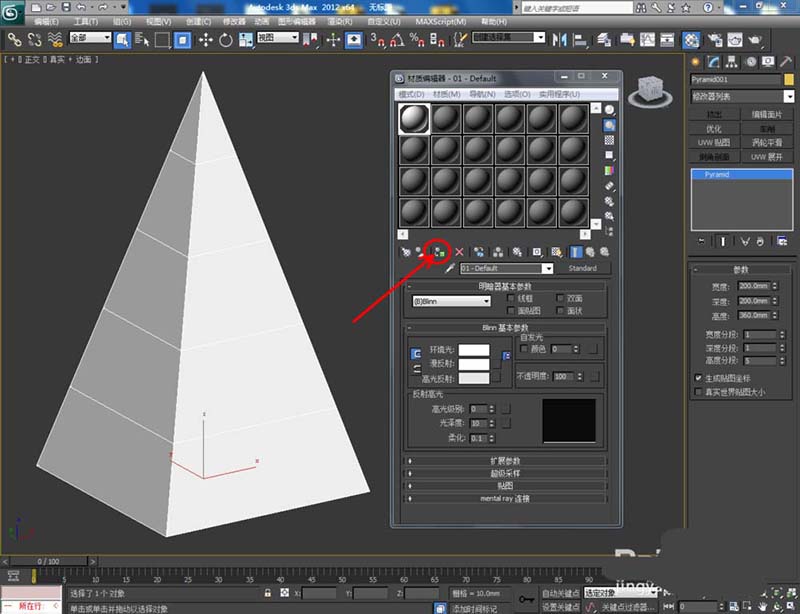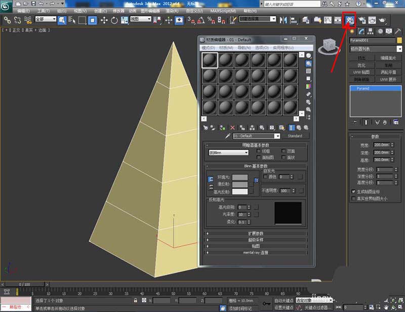 4、選中四棱錐模型,點擊【將材質(zhì)指定給選定對象】將材質(zhì)附加上去,這樣我們四棱錐模型就制作完成了。