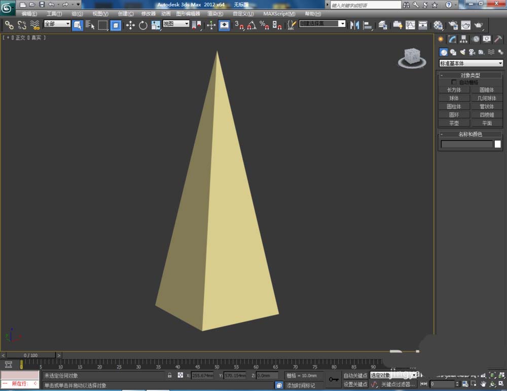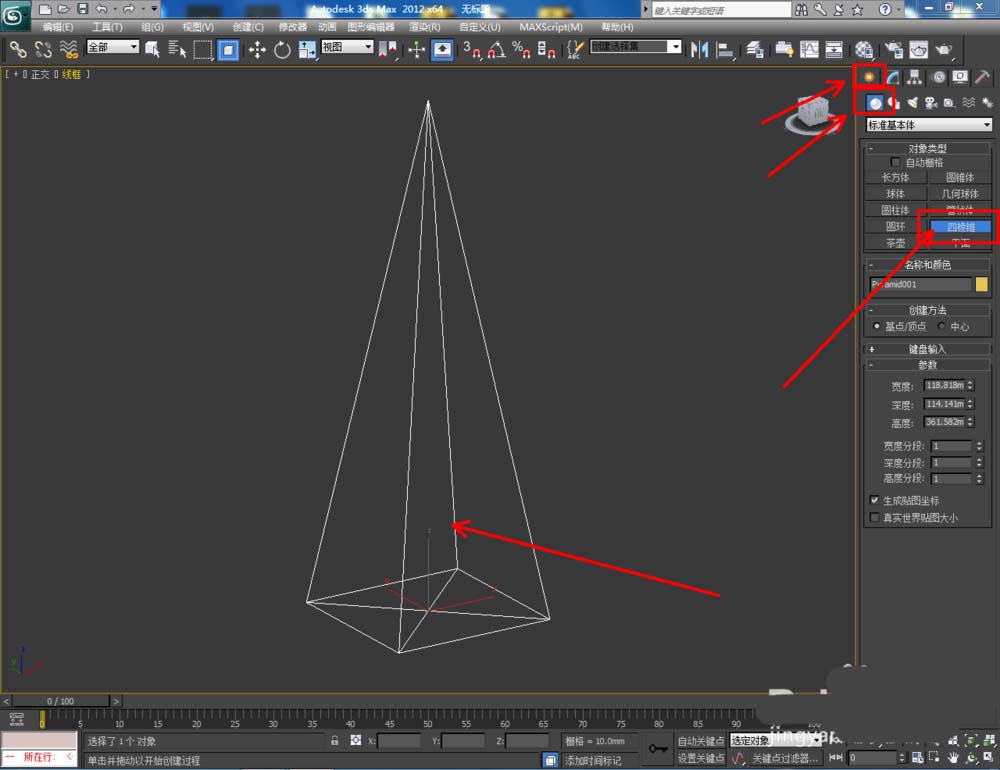1、打開3Dmax2012軟件,點擊【創(chuàng)建】-【幾何體】-【四棱錐】,繪制一個四棱錐模型;