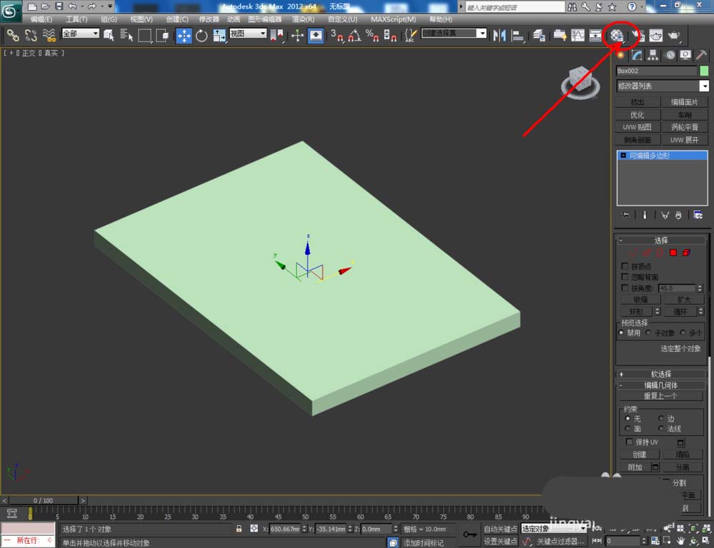1、打開3Dmax2012軟件,點(diǎn)擊【創(chuàng)建】-【幾何體】-【長方體】,在作圖區(qū)域繪制一個(gè)長方體模型并按圖示設(shè)置好長方體的各個(gè)參數(shù)。完成后,點(diǎn)擊鼠標(biāo)右鍵-【轉(zhuǎn)換為可編輯多邊形】;