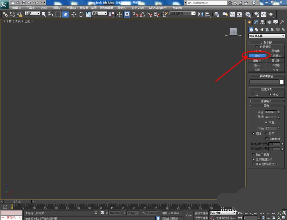 1、打開3Dmax2012軟件,點擊【創(chuàng)建】-【幾何體】-【標(biāo)準(zhǔn)基本體】-【球體】,在作圖區(qū)域繪制一個球體模型并根據(jù)需要設(shè)置好模型的各個參數(shù);