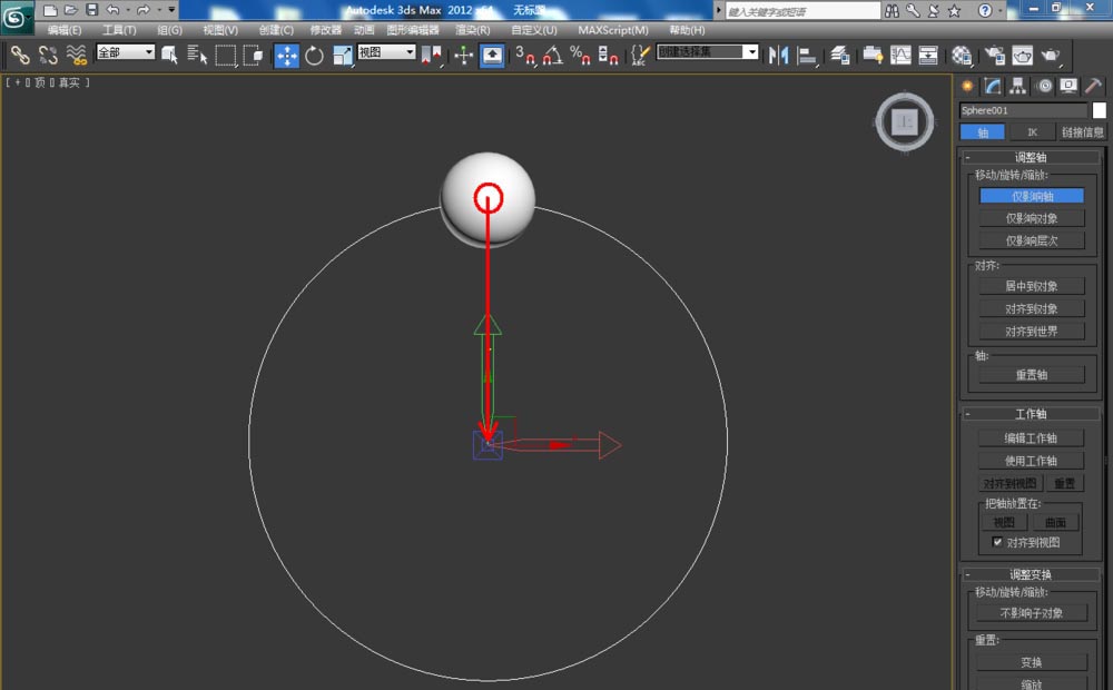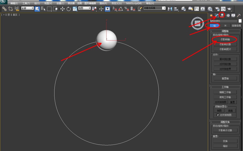 3、選中珠子,點(diǎn)擊【層次】-【軸】-【僅影響軸】,將珠子的軸移動(dòng)至系帶圈的中心點(diǎn);點(diǎn)擊【工具】-【陣列】,彈出陣列對(duì)話框,將z軸設(shè)置為360,數(shù)量設(shè)置為15后點(diǎn)擊確定;