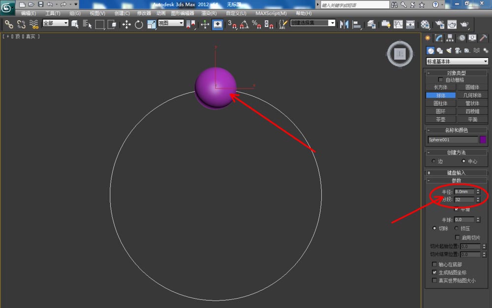 2、點(diǎn)擊【創(chuàng)建】-【幾何體】-【球體】,畫(huà)好第一顆珠子,球半徑設(shè)為:8mm。選中珠子,點(diǎn)擊【對(duì)象顏色】將珠子的對(duì)象顏色設(shè)置為:白色;