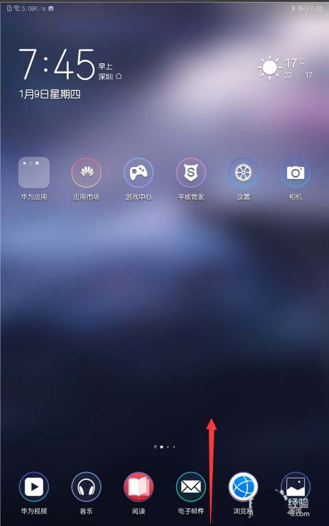 1、打開(kāi)華為平板m6,然后將其橫著,從平板的最底端向上滑動(dòng)