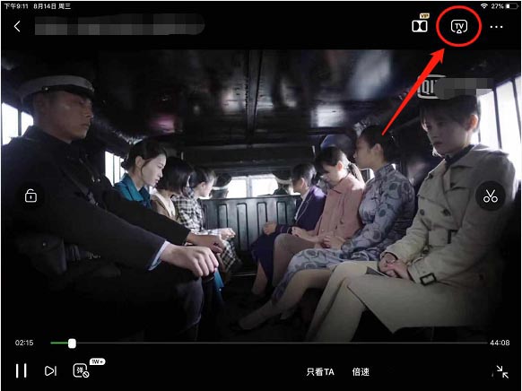 2、點(diǎn)擊屏幕右上角的投屏圖標(biāo),有些視頻App的投屏圖標(biāo)隱藏起來(lái)了,需要點(diǎn)擊右上角的三個(gè)小圓點(diǎn)展開(kāi)。