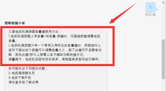 5、智能客服界面,輸入“三星遙控器怎么調(diào)節(jié)音量”點(diǎn)擊發(fā)送。