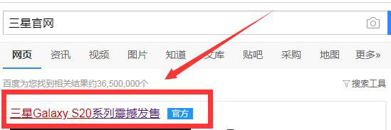 1、首先,在電腦端打開(kāi)瀏覽器輸入“三星官網(wǎng)”搜索網(wǎng)頁(yè)。