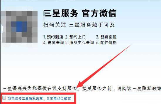 3、三星智能服務(wù)界面,勾選左下方同意協(xié)議。