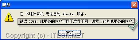 嘗試在“服務(wù)”管理單元窗口手動(dòng)啟動(dòng)服務(wù)時(shí),系統(tǒng)提示“錯(cuò)誤1079:此服務(wù)的帳戶不同于運(yùn)行于同一進(jìn)程上的其他服務(wù)的帳戶”,如圖7所示。