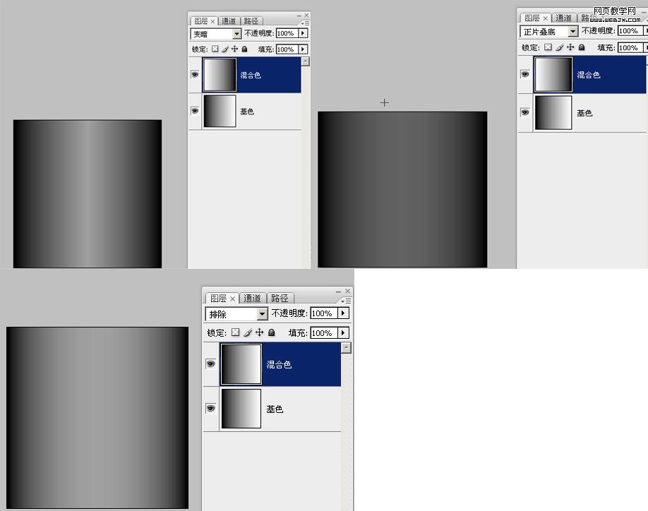 3.基色為中性灰,那么混合色為中性灰,結(jié)果色為中性灰