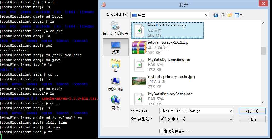 4、將下載好的ideaIU-2017.2.tar(現(xiàn)在最新收費版本是2.6,本文以2.2為例)上傳到該目錄下面