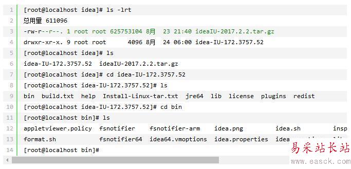 [root@localhost idea]# tar -zxvf ideaIU-2017.2.2.tar.gz